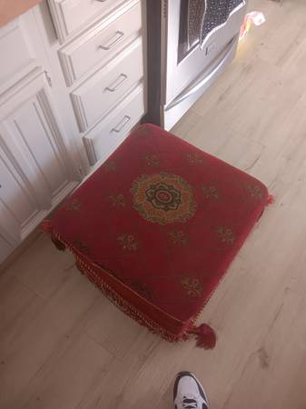 I have a Red color, Victorian style red ottoman in good condition and smoke free. 20 inches wide, 18 in tall. $40