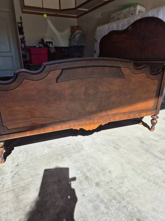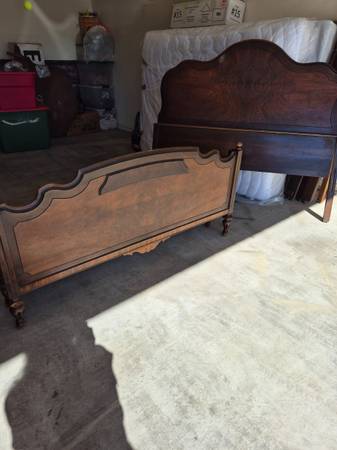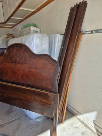 Full size 1950's Mahogany Bed, box spring and Serta mattress. Wrapped in protection zipper cover.