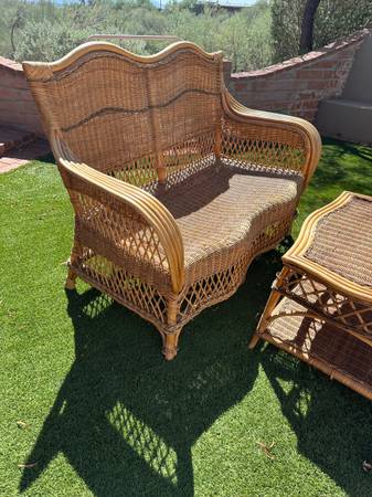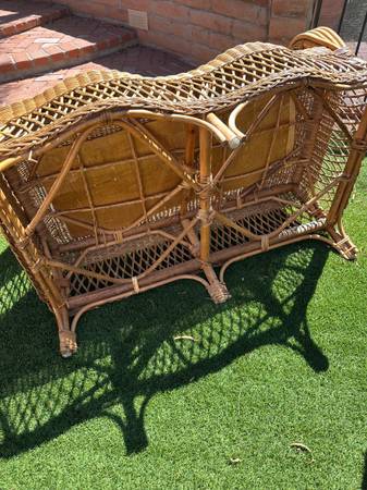 Beautiful rare vintage settee and matching coffee table. Amazing workmanship and detail. Slight ware and age.