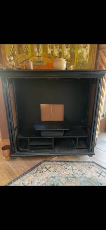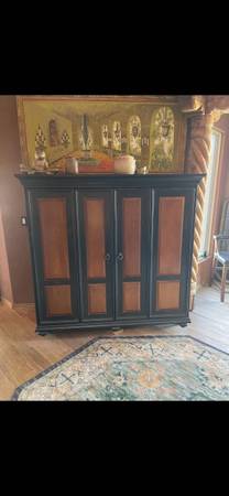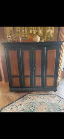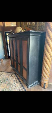 Beautiful extra large solid wood entertainment center armoire in lovely two tone finish. Features double pocket doors which easily glide in and double cd/dvd drawers to store your collection. There is also a pedestal piece inside that is removable if need be to accommodate different sizes of televisions. It will hold up to a 70” tv. This is definitely a statement piece and is a must see! Pictures do not do it justice. Originally cost $4900 and selling for $675. This piece is part of my mother’s expansive estate full of fine furnishings and art as well as much more. She has passed away and we need to find a new home for many great items. We do have some other items posted but not all so If you have any questions or are looking for something in particular then please feel free to reach out to see if we might have something to suit your needs. We are gearing up for a huge estate sale and trying to sell some of the larger items first to make room for display tables and such. Located on the northeast side off of Sabino Canyon and Cloud Road. Thanks so much! Please call/text 520900303four