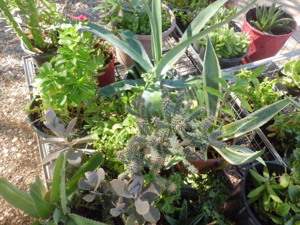 I grow succulents and plants that live outside in half shade, so good for patios or under trees. Follow me on Facebook, Diane's Garden Tucson. Discounts for quantity purchases. If cash is low, bring me your extra plants (not aloe) for trade. I will also trade my plants for your clay or ceramic pots, or you can bring me a box of good rummage (no broken or free bin stuff please). I still am not taking plastic pots yet. Tell your friends. I look forward to seeing you. Cheers.