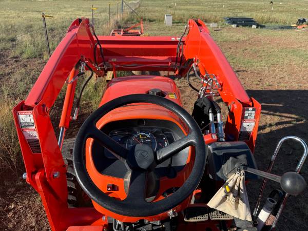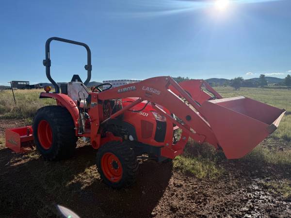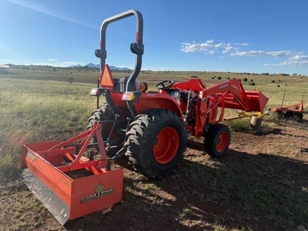 Kubota tractor, 191 hours. Has always had recommended service by a Kubota dealer. Runs like new. Includes land leveler, rake, grader, fork lift attachment and harrow. Located in Elgin Az.