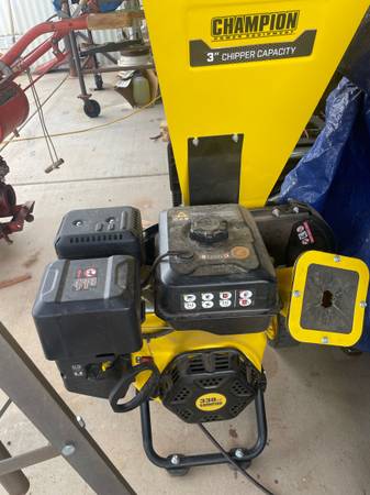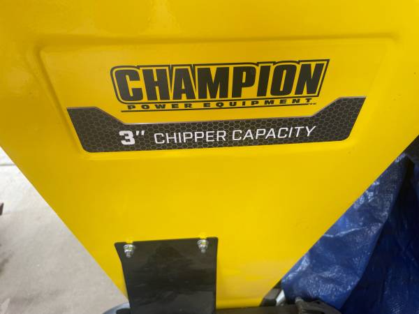 Champion 3” portable chipper shredder, powered by 338cc Champion engine. The chipper has steel blades to handle branches up to 3” while the shedder chute is perfect for branches 1/2” or less (Champion also makes a 224cc chipper which is a cheaper model)