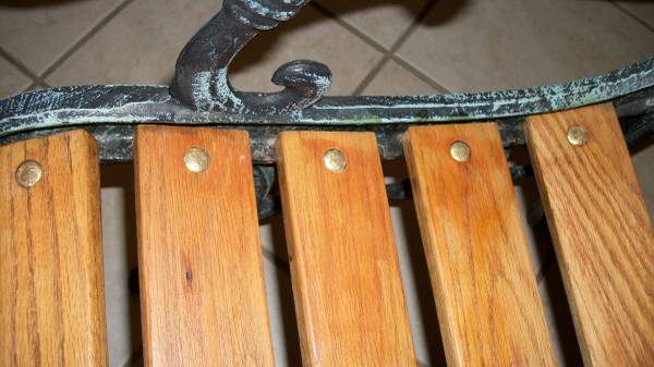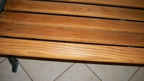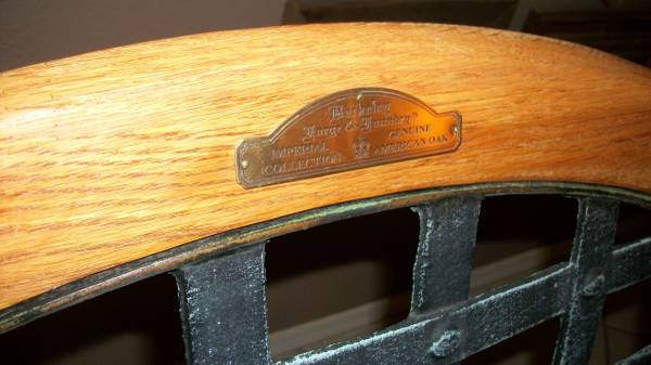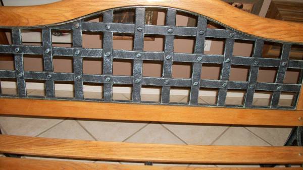 RESTORED CAST IRON AND WOOD BENCH, ORIGINAL BRASS BOLTS, PAINT[BLACK & GREEN] AND BRASS PLAQUE. $170 CALL 520-743-959 ONE
