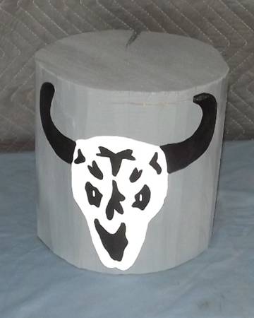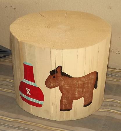 Hand painted pine stump plant stand have 2 - $20 each In excellent condition Approximate dimensions - Cow head - 9" tall X 8 1/2" in diameter Donkey - 7" tall X 8" in diameter