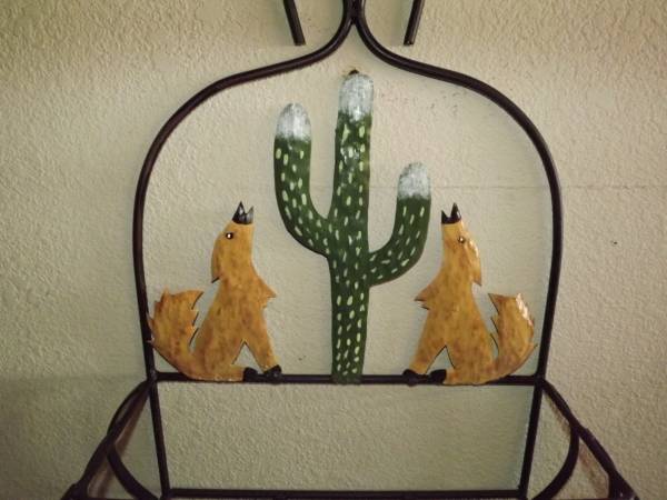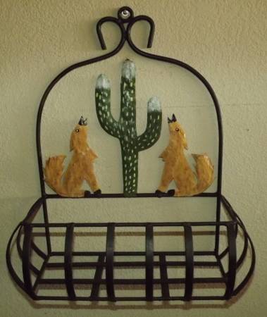 Southwest style hanging metal basket - $35 In good condition Approximate dimensions - 17 5/8" wide X 7 1/2" deep X 18 1/2" tall