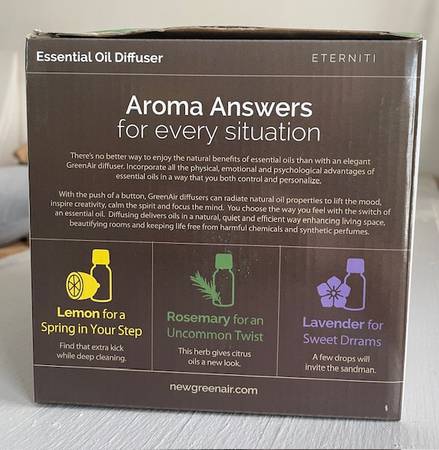 Brand new Eternity essential oil diffusers by GreenAir, I have a case of 8 diffusers. I am selling them for $50 each or $360 for the whole case. Here are the specs: