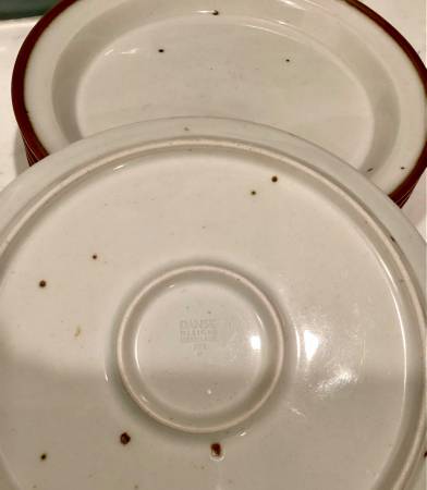 Set of 5 well cared for 8.5” brown mist, plates; made in Denmark;Refsguard Impressed stamp. Plates have no chips, etc. CASH please W/ pickup in Mill Creek. / Bothell. (Look for coordinating Dansk...