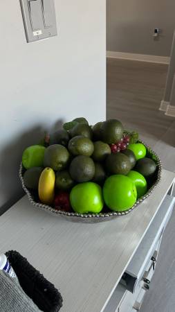 Large bowl of faux fruit. Multiple items of bananas, apples, grapes, and limes. Well made. Pick up Marana area. Twin Peaks and Silverbell Rd. Will not respond to Scamners….