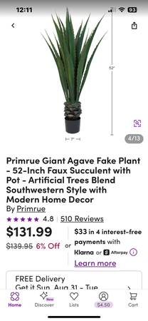 - 52-Inch Faux Succulent with Pot - Artificial Trees Blend