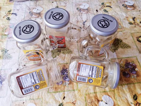 Offering LOTof 12 Clear Heavy Glass Small Jars/Containers/Mags about 250 ml= 1 cap (approx.) each with Thin Metal Screw On/Off Lids and Mag Type Handle. Condition - Pre-Owned, Clean, No Cracks, Very...