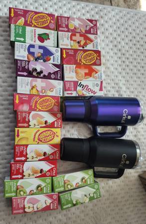 Bought these for me and Dad thinking they would be a pleasant healthy way to drink more water. Didn't really work for us. They are near new with LOTS of cartridges that are $3 each online. Tumblers...