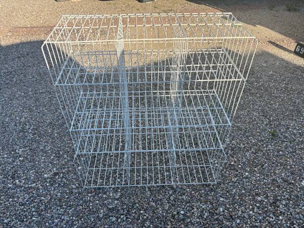 Large wall or floor cube style storage rack with 12 cubbies . I used it for sports equipment for my kids. Baseball helmets gloves balls etc but you could store what ever you want on it. Great for a garage to store items. Moved into an apartment so I can’t use it.40”tall - 36” wide and 8” deep
