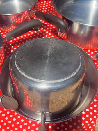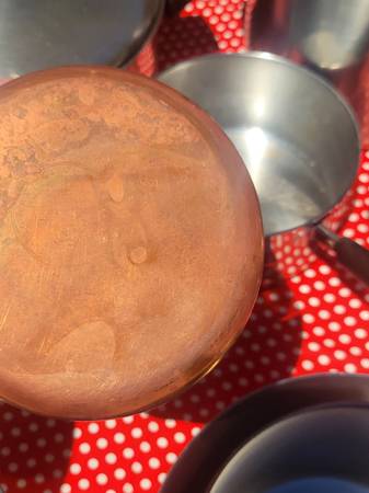 All the pots and pans are vintage Revere Ware. All copper bottoms except one sauce were noted in pictures. These have normal wear from use and age. Sold as set only Local cash pickup NW Tucson by...