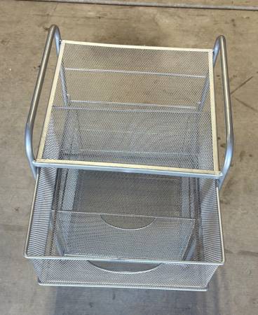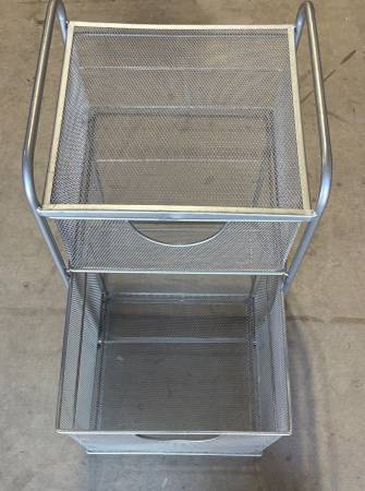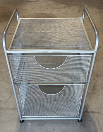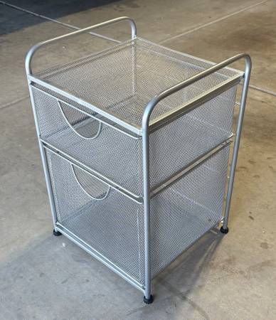 2 drawer wire mesh storage cabinet - $15 In good condition Approximate dimensions - 14 1/2” wide X 15 3/4” deep X 22” tall Great for home office