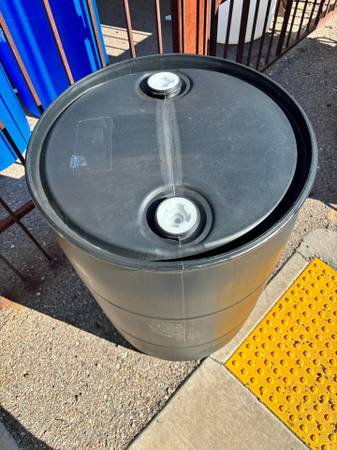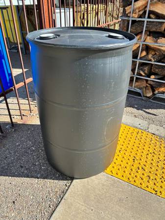 Good condition food grade drums! Previously held vinegar in them. Perfect for gardening, drinking water, landscaping, animals, and more! Once these drums are rinsed out with plain water, they don't smell! We don't often get black drums in, so make sure to get them before they sell out!