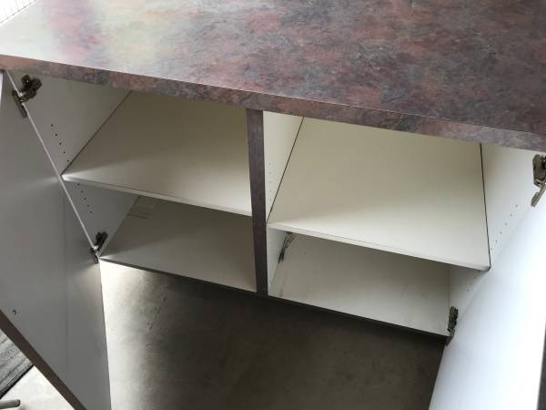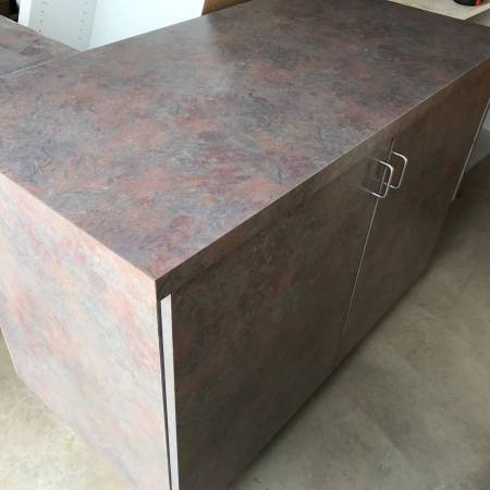 This is a used cabinet with a Formica top in excellent condition. The size is 48” wide, 24” deep, and 36” tall. Call or text