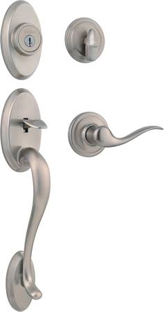 Brand new Kwikset Shelburne Satin Nickel Single Cylinder Door Handleset with Tustin Door Handle Featuring SmartKey Security. Was $144+tax asking $80