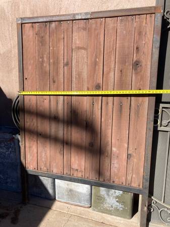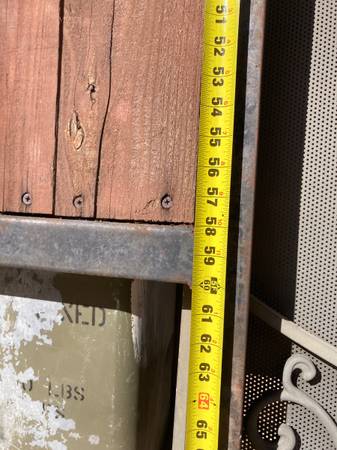 I have an extra fence panel that was never installed, but has been sitting outside for quite some time. All wood is still intact or you could replace with corrugated or some other material. Steel frame is in good condition like I said, never installed designed to be set in concrete. Measurements are in photos.