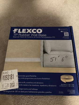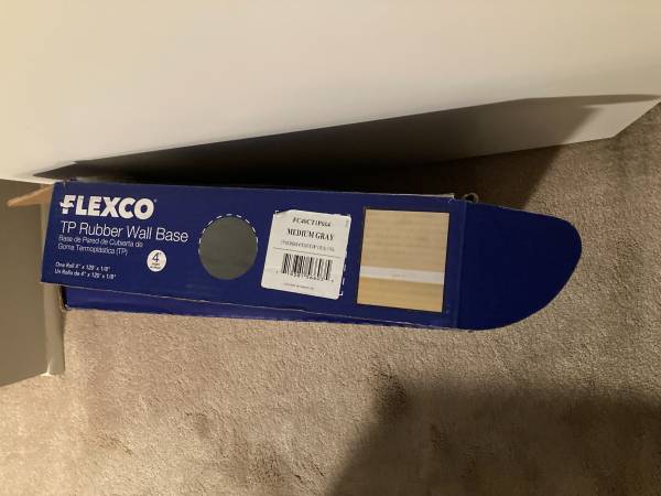 Never Used Flexco TP Rubber Wall Base - $25 Medium Gray Used half the box - Paid $90 for full box at Home Depot (51' 6” left in the box) Nice wall base for a garage Contact Evelyn: (home phone)...
