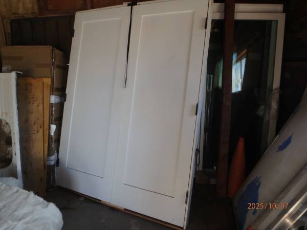 New ///French interior single panel doors , 5' 1.5 " W X 81' 1/2 H. These French doors have two 36 " single panel doors . Never installed