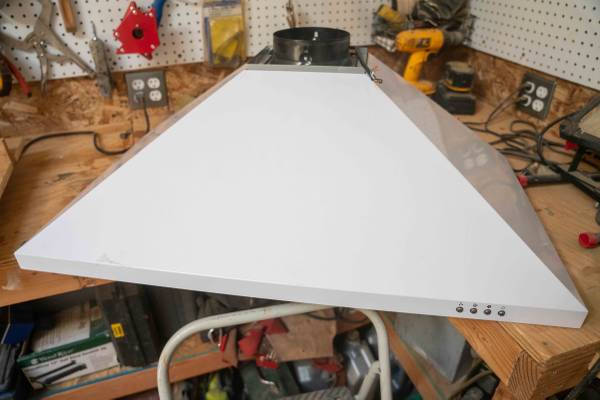 36" Range Hood. never installed. In near perfect new condition. White. Two very small scratches in white paint could easily be touched up. Pyramid shape. Can be used vented or un-vented. With vented...