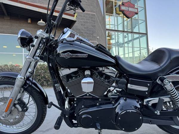 The 2011 Harley-Davidson® Dyna® Super Glide® Custom FXDC is a bike with the power you need and all the Harley® chrome you want. The Super Glide® Custom motorcycle holds true to its name with unique, custom styling features from tire to tire. The tank-mounted gauges engulfed in chrome, authentic leather fuel tank panel, unique battery box cover, solid stainless steel pullback handlebar, and fuel tank medallion that oozes iconic Harley-Davidson® attitude all make this bike one-of-a-kind. Powering this Harley® Dyna® bike is a black and chrome Twin Cam engine. For a custom look the engine has chrome rocker covers, highlighted fins on the cylinders, and powder coated cylinder heads. For lots of Harley® chrome and a smokin' Harley® deal this is your custom Harley®.