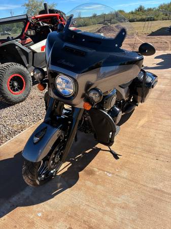 2021 Indian Motorcycle Chieftain Elite Thunder Black Vivid Crystal / Carbon Crystal, Tab exhaust reduced reach handlebars, RydeCulture saddlebag lights, lowering kit, also with stock parts.