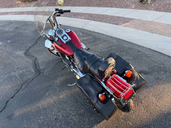 Fully dressed in stock Harley Davidson all around. Includes leather toolbox, luggage rack and cargo holder, black leather tank strap and more. Also comes with cover and two original sets of keys. All maintenance performed with rebuilt original Harley Davidson CV Carberator, new battery, fresh oil change at 27,050 miles. Please message for any additional pictures.