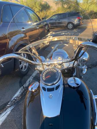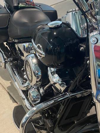Added accessories: Original H-D parts, engine guard, passenger floorboards, passenger backrest, eyebrows on all front lights. After market, vance and hines exhaust, strobing brake lights, chrome coil cover. Will include battery charger, oil filter wrench, belt tensioner tool, motorcycle cover, 5.000 mile Harley oil change kit. No sales tax. Vivid Black. Never been down. 75 year old selling because of heart issues.
