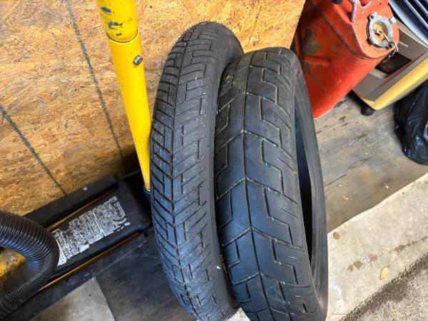 1 tire still has a tag on it. 1 is used I believe. Comes with 2 used intertubes with no holes.