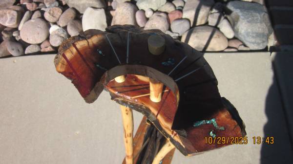 Custom guiter stand for acoustic or electric 13 different kinds of wood and ivory manzanita,pecan,blood wood,tiger wood,ivory,ebony,purple heart,cedar,mesquite,turquoise, one of a kind