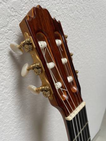 Jose Oribe Flamenco/Classical guitar: This is Oribe's top of the line instrument, built in 1998 in his Vista, California shop. Sides and back are Spanish cypress, top is German Spruce, 665mm scale, 53mm nut, ebony fingerboard , Gotoh Premium machine heads, Oribe case and cover. The sides, back and top were refinished by German Vasquez Rubio in Los Angeles. One can play classical on this instrument.