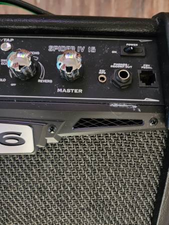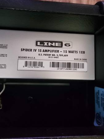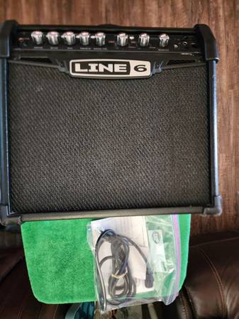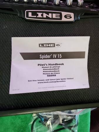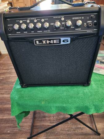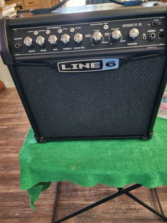 Line 6 Spider lV 15 Guitar Amplifier Speaker combo with, owner manual, power cord &15 watts 1-8" speaker. The Line-6 Guitar amp works as it should and in great working condition. Please review the pictures for condition and what is included. Must pick up and load. $80.00 Please call or text 520-2 eight 9-04 nine8 Cash only (No Emails or codes!)