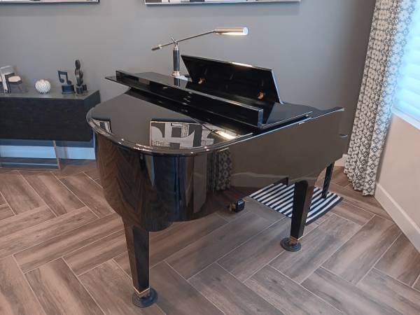 This exquisite instrument was purchased from the show-room floor at Hamilton Music, Inc., in Rochester, Minnesota. It was delivered to my home in October 2007. This Baby Grand has a beautiful shiny high gloss polished EBONY finish. This Baldwin Hamilton Piano has been with the original owner the entire time. The instrument has been meticulously cared for and maintained by its owner. It is in VERY GOOD condition!! Last tune-up and pitch raise was performed by Hachenberg & Sons, Inc., Piano Co., Tucson, AZ.