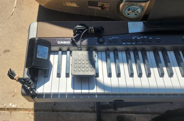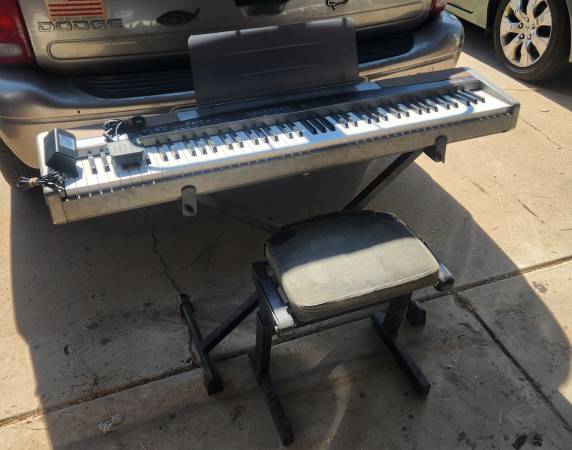 This digital piano has allowed me to play almost anywhere, providing there's a power source. I mainly used it to practice for church (hymns), and in locations a piano wasn't accessible. Full-size keyboard, with weighted keys mimicking the actual action of a piano very closely, has single pedal that I have always used with the sustain port. All keys, built-in metronome, alternate instrument sounds (i.e. grand piano, organ, pipe organ, etc) work. The only issue is a short with the volume control; this has no effect when using headphones, only with built-in speakers. However, placing some tension on the volume nob with a rubber band fixes the problem. This isn't a synthesizer or keyboard for music mixing. The stand and seat come with keyboard, both are adjustable for height. The seat does have tape over one side due to rubbing wear (visible in fourth picture). The seat and stand collapse for easier storage or transport. This is a great starter piano (cheap), if you need something portable, or for someone that might want to practice but doesn't want the bulk of a full-size piano.