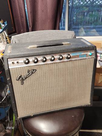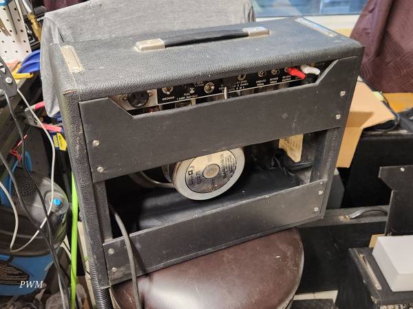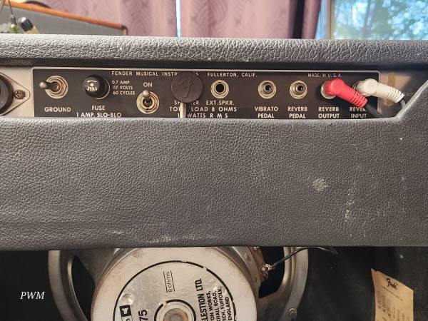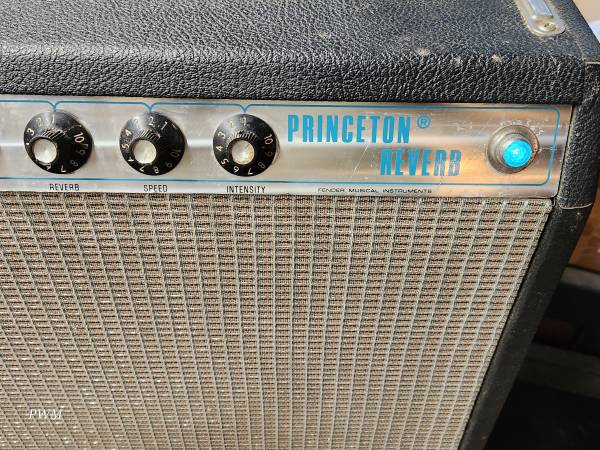 This vintage Fender Princeton Reverb amp has just been serviced. The electronics are all original including filter caps. The baffle has been modified many years ago for a 12" speaker. Has new reverb tank, cables, and isolation bag. Sounds great with some of the original Fender Preamp tubes.