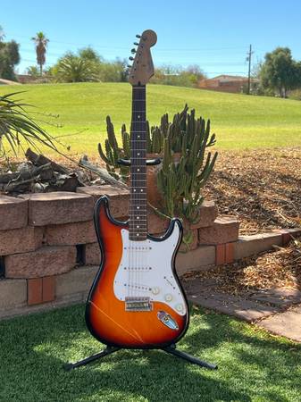 Adult owned Made in Mexico Fender 1995 Stratocaster in 3 Tone Sunburst. Vintage and rare All original in mint condition, this guitar plays and feels like a dream. No problems or issues at all. Looking to get 450$ cash. Check out my page for more. From a Smoke Free, Pet Free, Child Free, Covid Free Home.