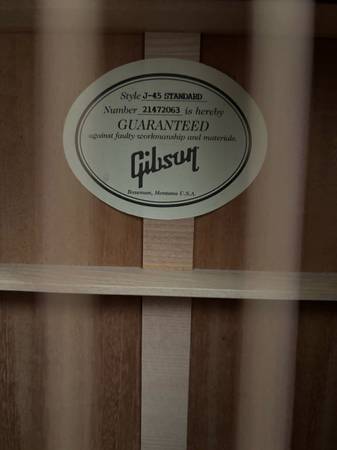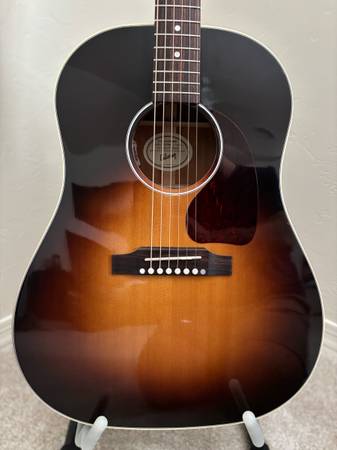 The J45 standard is the workhorse of the Gibson line. Warmth and Tonal Clarity. Gibson Factory LR Baggs Sound System installed and comes with Original Gibson Hardshell Case