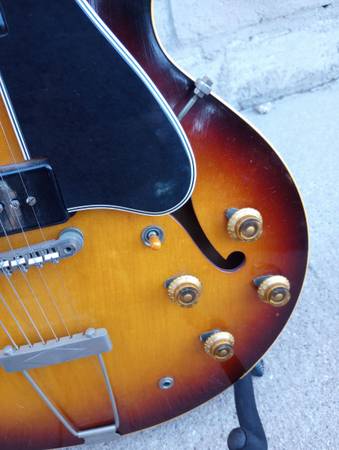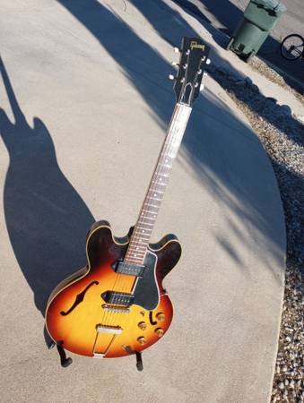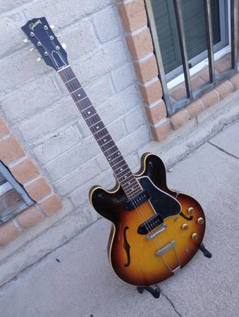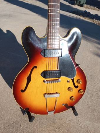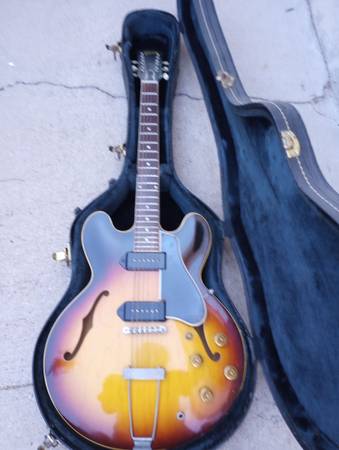 In great condition for it's age. Plays great and lightweight full hollow body. First version of these with dots and binding. All original and unmodified