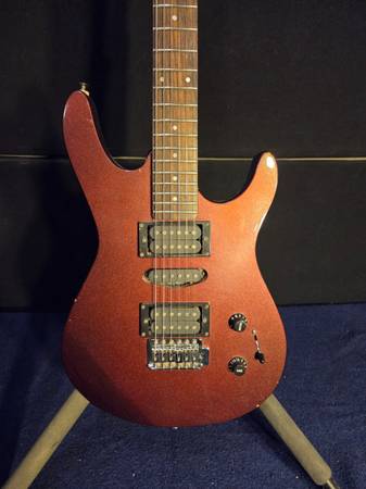 Nice looking Lyon Strat style guitar. Works and plays well, slight scratching and chipping from use. Must pick up in the downtown area. Cash only. No trades.