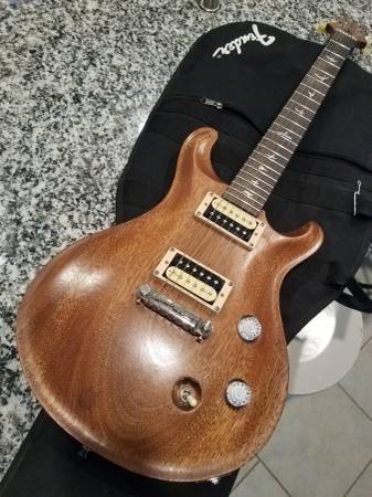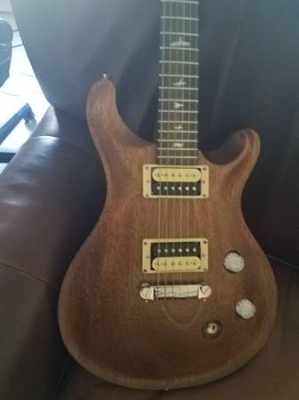 This is an all mahogany PRS style guitar built from a premium Bian Xeubin kit. The guitar is built with African Mahogany and a nitrocellulose finish. PRS SE 58/15 pickups, locking tuners, premium wiring pots and switches, rosewood fretboard with a C shape neck. Set up was a lower action for comfortable playing, and it has a nice midrange perfect for blues rock and even country pickin... There is some bumps, dings and cosmetic scuffs here and there due to playing it, but its a smooth player.