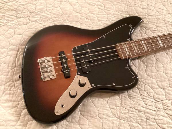 Selling this practically new Classic Vibe Jag Bass. It has less than 10 hours use on it and never left the house. It's been professionally set up, with the fret ends polished and a nice set of half-round strings. Plays great, with lots of different tone options. No dings or dents. Email me if interested - NO TRADES.