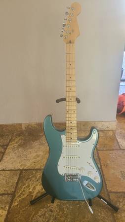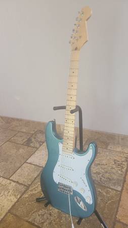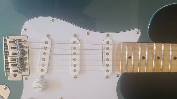 Completed kit guitar build with upgraded components. Seymour Duncan Vintage Flats, Fender pots, Fender locking tuners. The bridge is the one that came with the kit. Automotive polyurethane finish with truoil neck. With gig bag