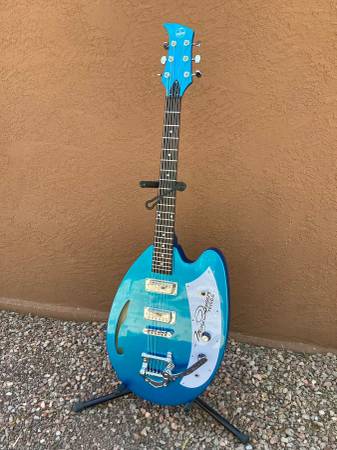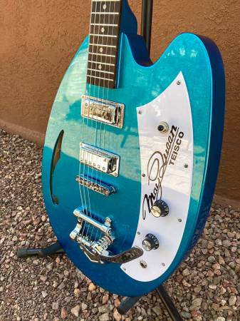 Surfs up! Selling this practically new Teisco May Queen repro. It's fully set up & intonated, with a new roller bridge for better tremolo bar action and has a fresh set of strings. She plays and sounds great with 2 humbuckers and sealed tuners. Beautiful color too. No scratches or dings. Stand out with this retro beauty. Email me for more info. NO TRADES - thanks!