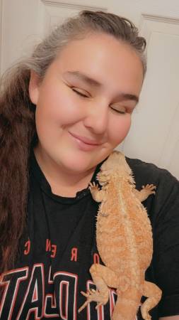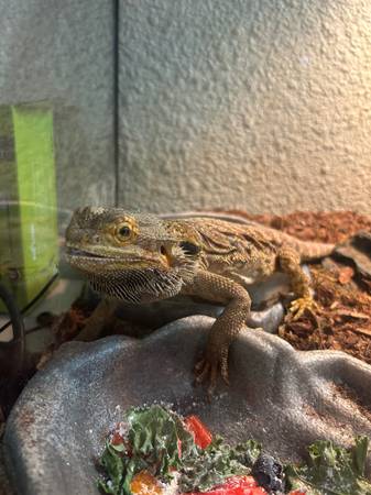 She is so loving , shes great with kids and has a great personality. She loves her super worms and dubia roaches but will eat her greens just fine. Looking for someone who can give her the love and attention she needs. Asking a small rehoming fee of $150 obo.