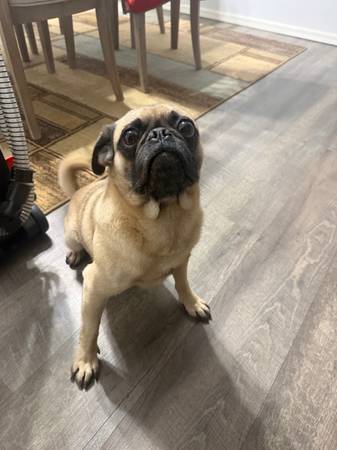 hi this is Doug he is a 3 year old pug he is potty trained and does very well in the kennel. He knows tricks and loves to play. He’s super good with kids and dogs. He comes with a kennel and other...