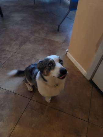 We are moving and cannot take him with us , he will be 6 in July. Dad was a Merle corgi , mom was a mini aussi. He was with other dogs but he can be timid at first. Loves attention and would 100%...