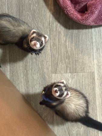 Male and female ferrets with cage. Super friendly and full of energy. Love to play outside of their cage, enjoy chasing each other and hiding your shoes 😁 $650 for cage, toys, food, litter. Ferrets...
