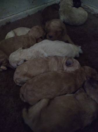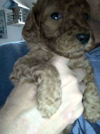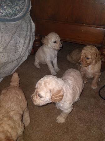 Born on October 14th. Tails docked, dew claws removed. Shots at 6+weeks. Born to AKC mom, Apricot and white pure bred dad. Healthy. 8 will need to be rehomed to serious inquiries only! Asking $900 with rehoming kit.